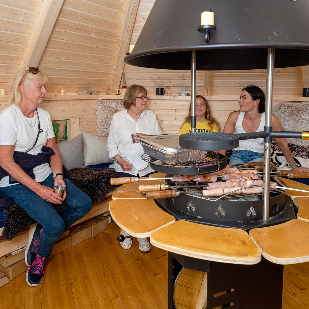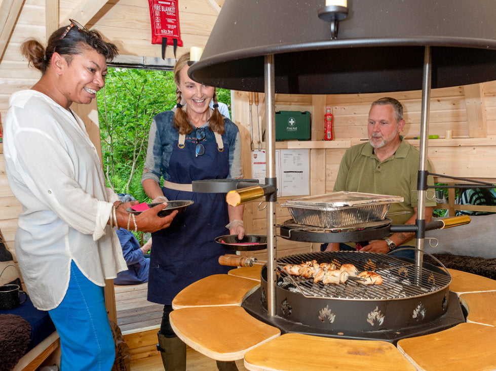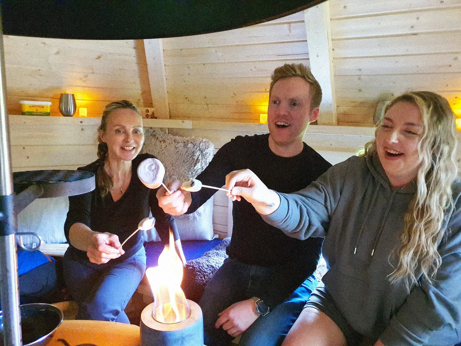The hut is watertight and purpose built, so if you don’t want to be outside, you can stay toasty and dry, and just watch the coals glow.